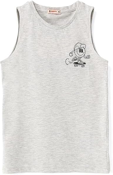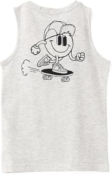 Generic - Boys Sleeveless Cotton Tank Top with Skater Smile Print - Light Grey