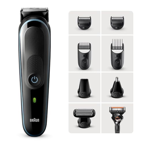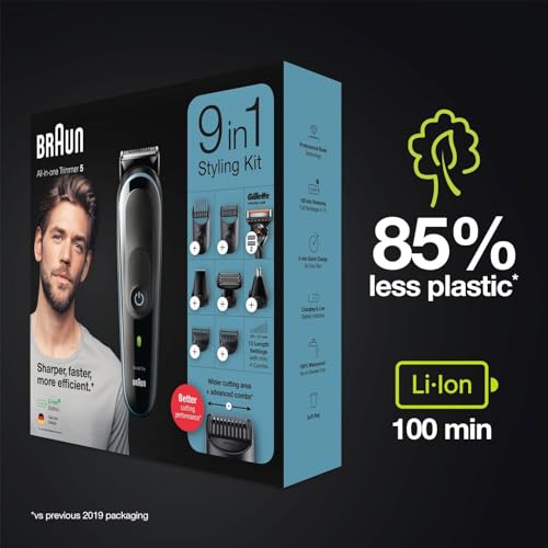 - ماكينة حلاقة براون الكل في واحد MGK5380، ماكينة حلاقة 9 في 1، 7 ملحقات وماكينة حلاقة بروجلايد من جيليت