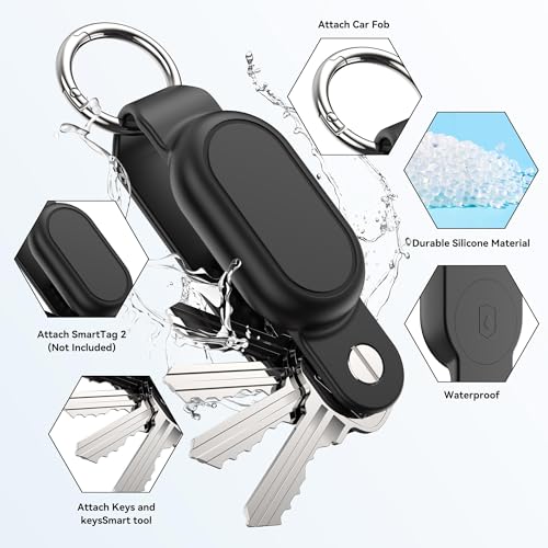 Bukela - منظم مفاتيح مقاوم للماء من بوكيلا لسمارت تاج 2، حامل مفاتيح صغير لسامسونج سمارت تاج 2، يتضمن حلقة مفاتيح حلقة، حافظة ذكية مضادة للسرقة للمفاتيح الامنة، يناسب ما يصل الى 5 مفاتيح، اسود