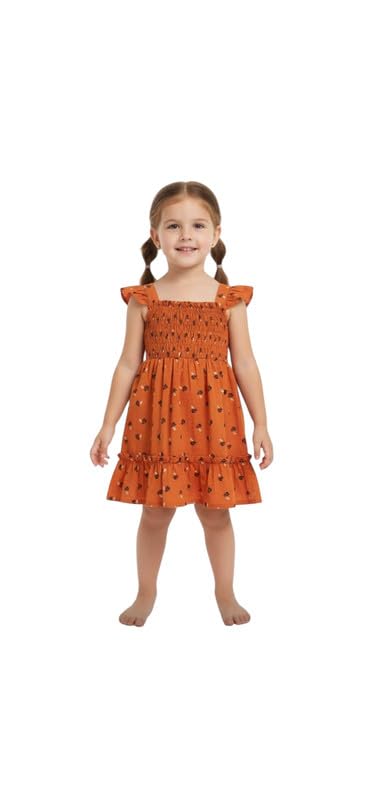 Buongiorno - Buongiorno Floral Smocked Ruffle Sleeve Dress For Baby Girls - Terracotta