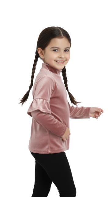 Buongiorno - بلوزة قطيفة سادة باكمام طويلة للبنات من بونجيورنو - بينك