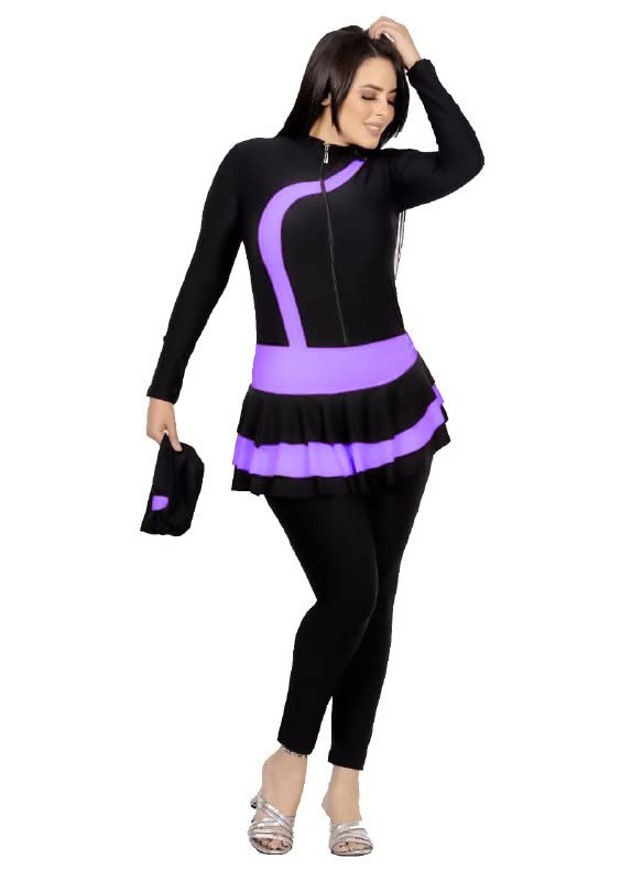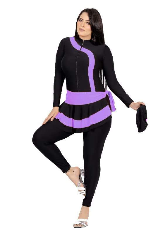 Generic - Burkini Women's Swimsuit Zip Waist Pocket Poncho Jumpsuit