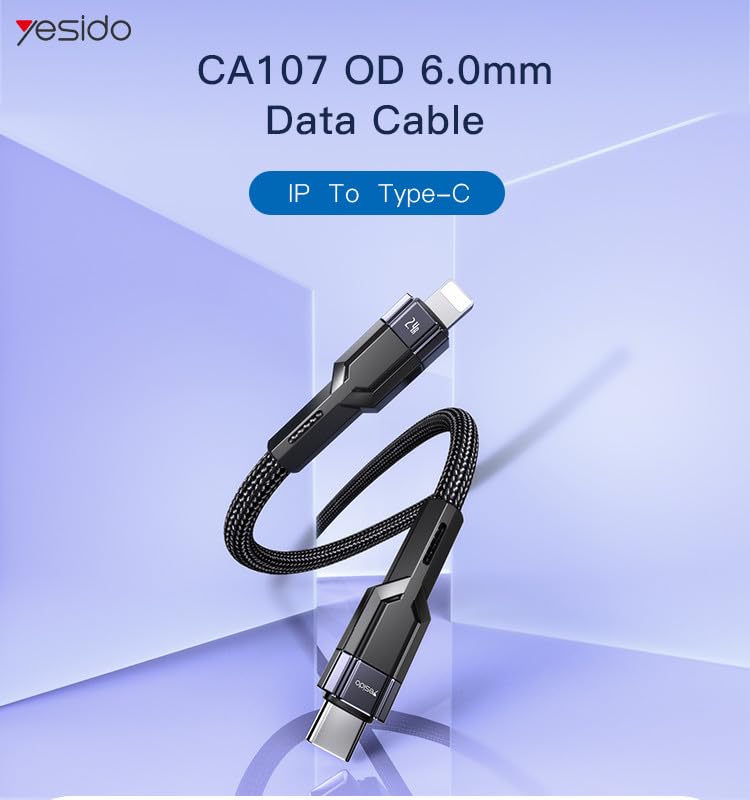 Yesido - CA107 Nylon Braided Cable 1.2m Stretch and Bend Resistant Type-C to Lightning Data Cable