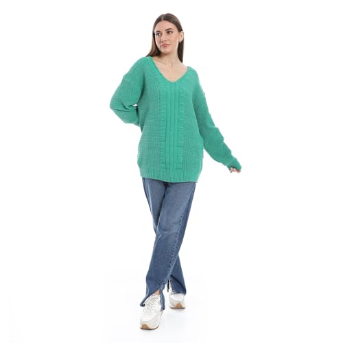 CAESAR - CAESAR WOMEN WOOL PLAIN PULLOVER WITH V NECK MULTIDESIGN,GREEN,ONE SIZE FITS ALL