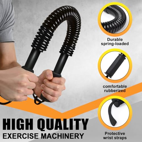 - High Quality Versatile Workout Bar: Durable arm exercise equipment, quality construction, and comfortable rubberized grips give you a sense of the quality of this arm workout equipment flex bar. Non-slip grips and wrist straps ensure your safety. When exercising, hold the wrist strap with both hands and make sure no one is around. This fitness equipment is easy to carry around for a comfortable workout at home, in the office or while traveling, turning your free time into an effective workout time.