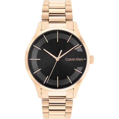 Calvin Klein - ساعة ايكونيك من الستانلس ستيل المطلي ايونيا بلون ذهبي قرنفلي ومينا من كالفين كلاين للجنسين، مقاس 35 ملم موديل 25200037