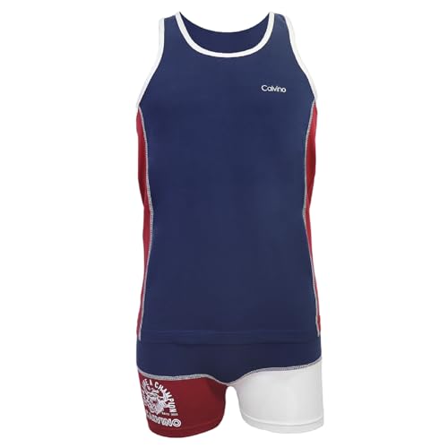 Calvino - طقم ملابس داخلية مكون من فانلة بدون أكمام وبوكسر من القطن للرجال من كالفينو(عبوة من قطعة واحدة)