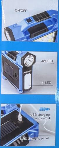 Generic - مصباح يدوي للطوارئ يعمل بالطاقة الشمسية او الكهربائية قابل لاعادة الشحن مع 3 اوضاع اضاءة