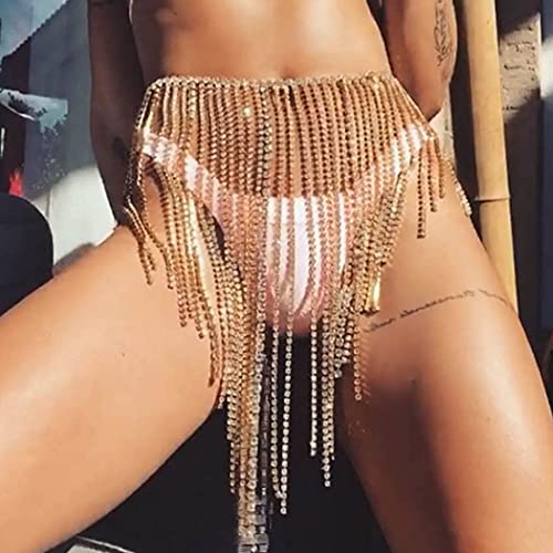 Campsis - Campsis Boho Body Chain Gold Sexy Rhinestone Belly Chain Tassel Hip Waist Chains Nightclub Raves Ball Jewelry Accessories for Women and Girls
