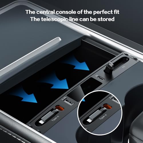 ibxShow - شاحن سيارة USB متعدد المنافذ لسيارة تسلا موديل 3/Y 2021 2022 2023، ملحقات تسلا متعددة الوظائف مع شعار وكابل قابل للسحب، موزع USB تيسلا يناسب 100% محول وحدة التحكم المركزية، هدايا لمالكي تسلا