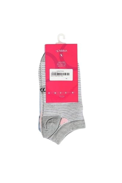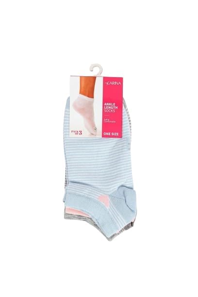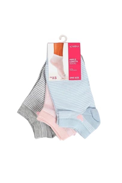 CARINA - Carina Cotton Striped Elastic-Trim No-Show Socks for Women - Set of 3 - Multi Color, One Size