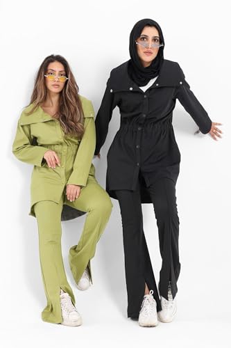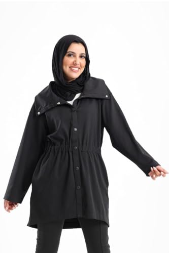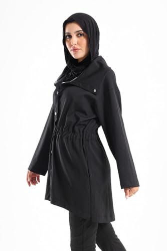 CARINA - جاكيت مريح بياقة مضلعة للنساء من كارينا، لون أسود عصري
