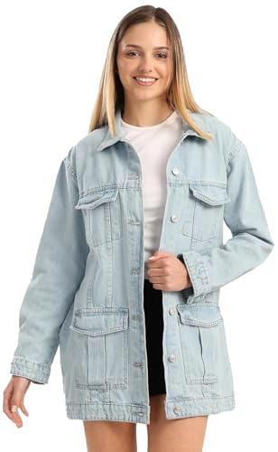 CARINA - CARINA Womens Blue Oversized Denim Jacket Denim Jacket