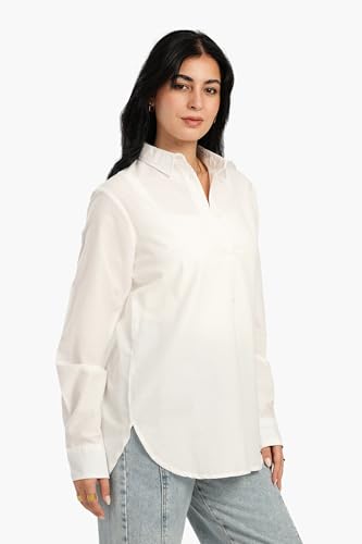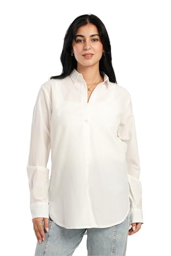 CARINA - CARINA Womens Off White Poplin Shirt Modern