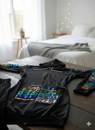 Generic - Casual Set For Women Milton Black Fashion Sportswear Set With Colorful Embroidery