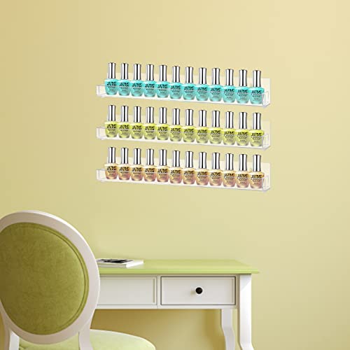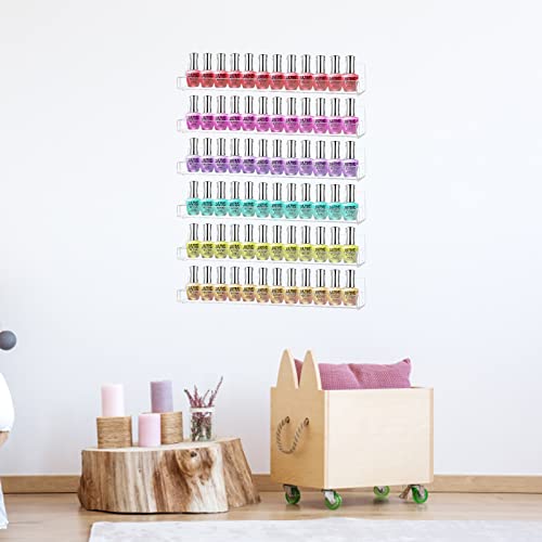 CECOLIC - 6 Pack Acrylic Nail Polish Rack Wall Mounted Shelf Holds up to 90 Bottles, Clear Nail Polish Storage Organizer with Removable Anti-slip End Inserts for Wall Display - 15 inches
