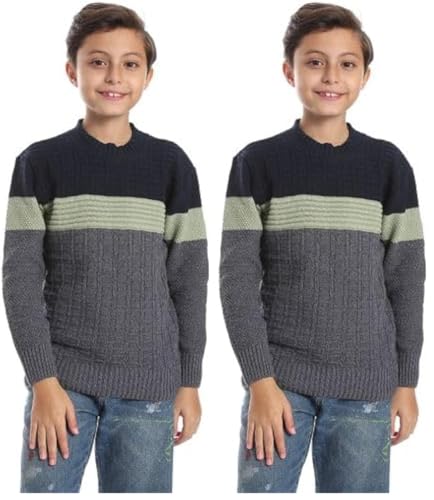 Cesar - Cesar Boys Round Neck Pullover Long Sleeve Wool Boys Pullover With Multi Design