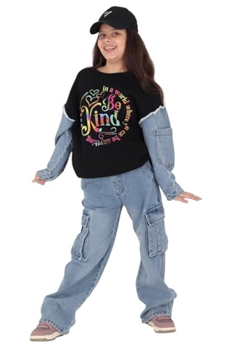 Choice N.C - Girls Winter Pajamas "KIND" - A Touch of Style and Warmth (Code 678) (Black, 12Y)