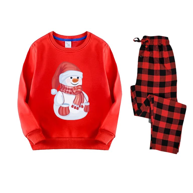 Generic - طقم بيجامة للكريسماس، سويت شيرت ثلج احمر مع بنطلون منقوش، ملابس نوم للعطلات من قطعتين مقاس (XL)