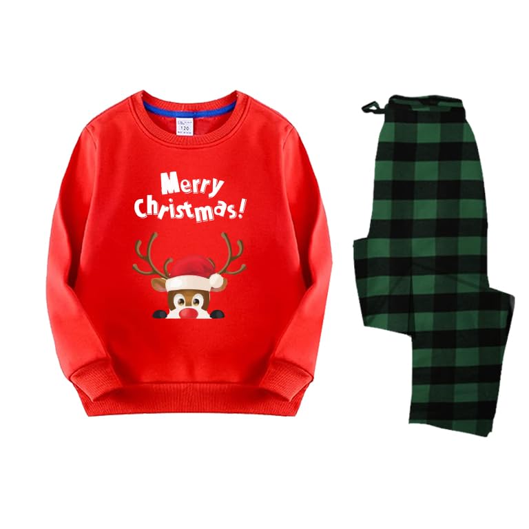 Generic - Christmas Pajama Set, Red Sweatshirt with Merry Christmas Reindeer Print, Green Plaid Pants Size (S)