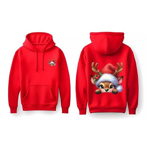 Generic - Christmas Reindeer Hoodie, Red with Holiday Design, Winter Festive Sweater Size (6-9Y)