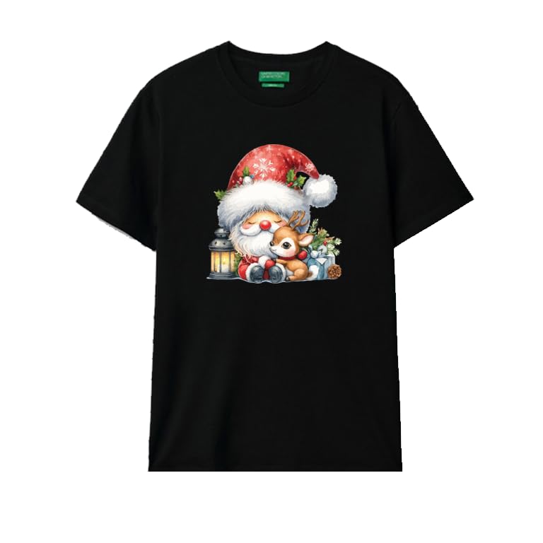 Generic - Christmas T-Shirt, Black Cotton, Cute Santa and Reindeer Holiday Design, Festive Winter Graphic Print Size (3-6Y)
