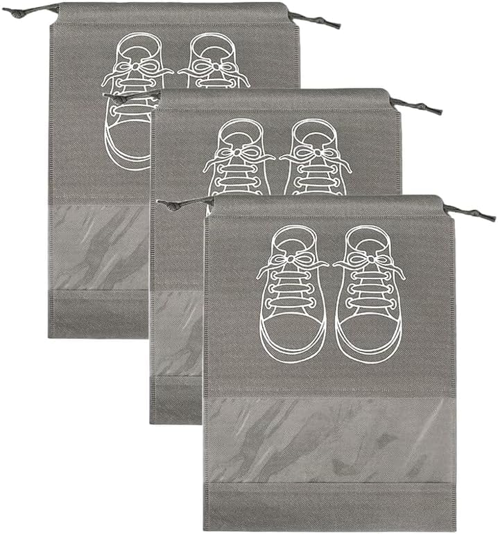 Circle M - Circle M 3-Piece Large Waterproof Shoe Storage Bags: Dustproof Drawstring with Window – Grey