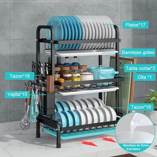 Circle M - مصفاة اطباق من سيركل ام، تصميم من 3 مستويات مع شبكة لوح تقطيع وشبكة ادوات المائدة
