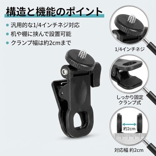 SELECOCO - مشبك من نوع المشبك لبرغي 1/4 انش، كاميرا متعددة الاغراض / ميكروفون / ضوء