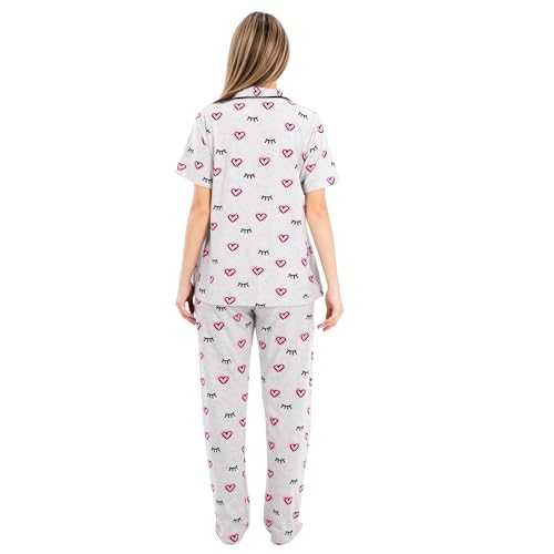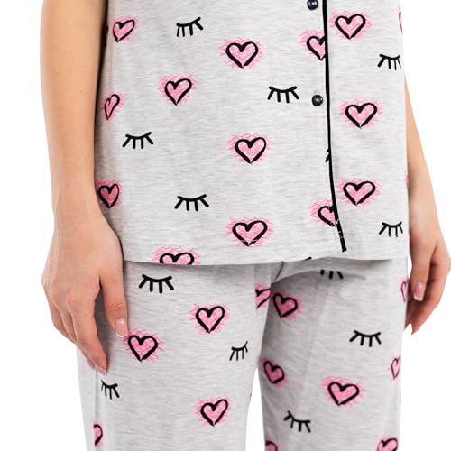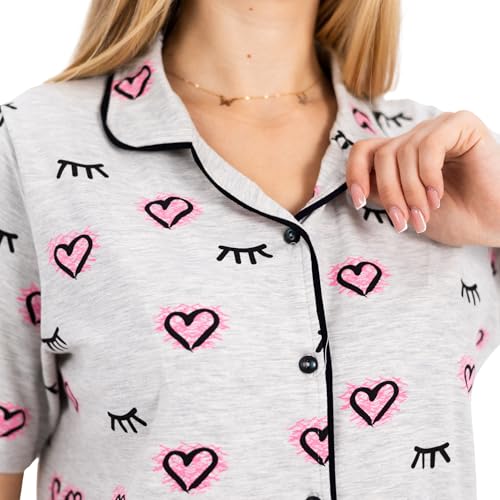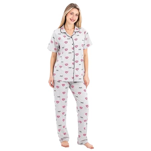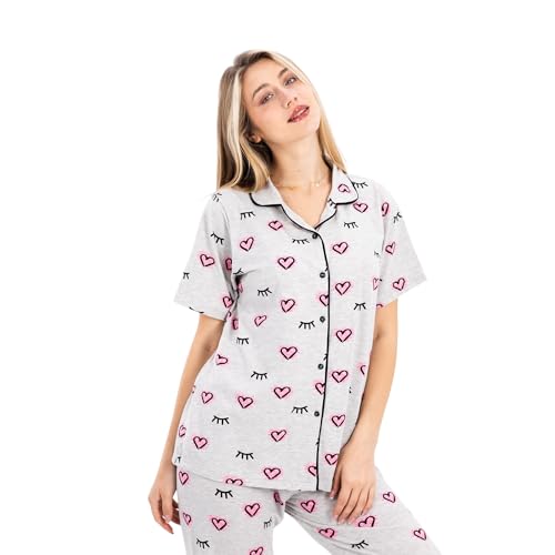 ZECOTEX - بيجامة قطن بتصميم كلاسيك أنيق وخفيف الوزن ومريحة للغاية، ملابس منزلية بلوزة نصف كم وبنطلون بطبعة قلب للنساء