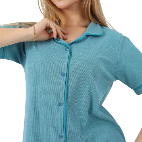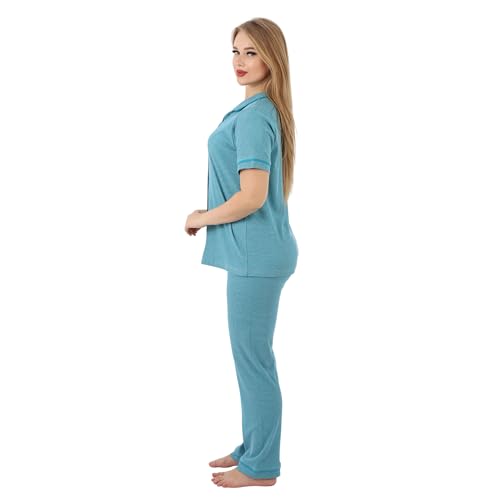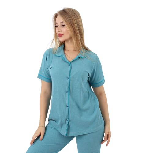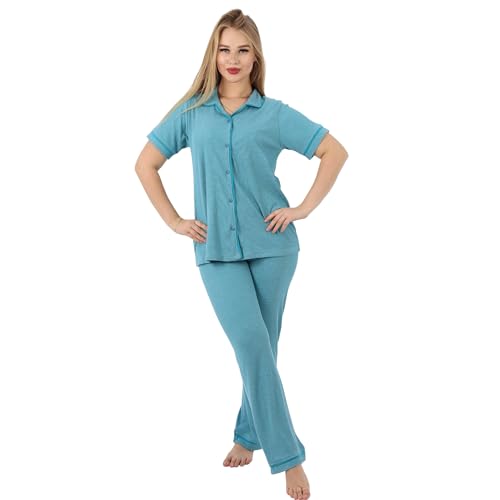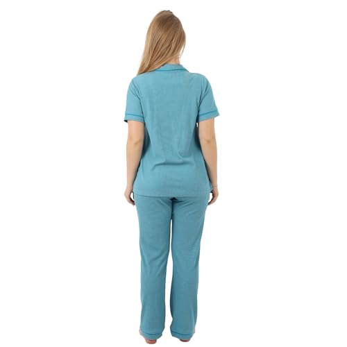 ZECOTEX - Classic Cotton Women's Pajama Set | Button-Up Short Sleeve Top & Full-Length Pants | Soft, Breathable Fabric | Sizes S to 3XL | Comfortable Sleepwear & Loungewear