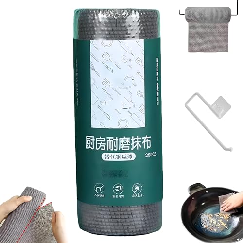 - Every roll features 25 convenient pieces that simplify the cleaning process by allowing you to tear off just what you need. Thin yet durable, these sheets can easily slip into tight corners and narrow kitchen crevices that are often hard to reach. To use, simply wet the cloth, lather with your preferred detergent and clean thoroughly, enjoying an effortless workflow that turns tedious dishwashing into a streamlined activity.