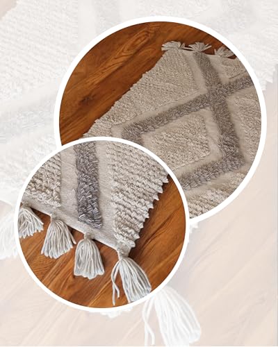 Coccaro Home - Handmade Embossed Tufted Pattern Carpet, Khaki, 1.73 Meter x 0.90 Meter