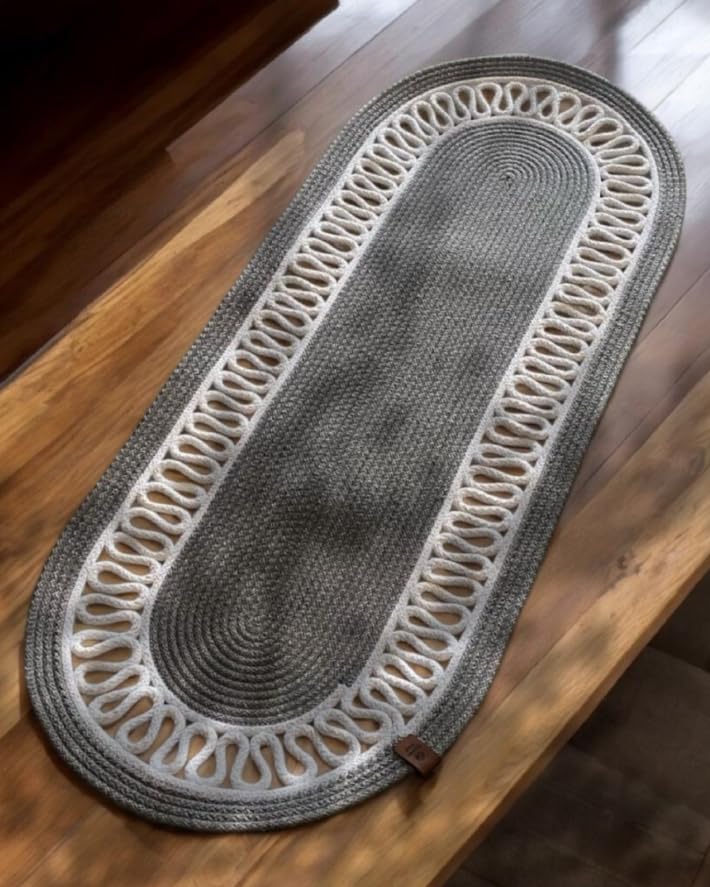 Coccaro Home - مفرش طاولة جوت بنمط بوهيمي وتصميم مموج من كوكارو هوم، لون رمادي/أبيض
