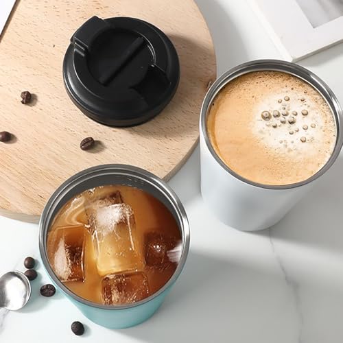 Generic - مج سفر مع غطاء، مصنوع من الستانلس ستيل 304، سعة 350 مليلتر، باللون الأبيض، معزول بتفريغ الهواء ومانع للتسرب، عدد القطع: 1