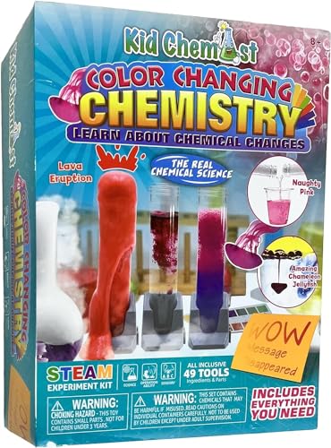 - INFORMATIVE BUT EASY: Kid Chemist Color Changing Chemistry Kit is extremely easy to follow. With simple informative instructions clearly demonstrating scientific principals it makes science feel easy and lightweight. Also, this kit comes with a handy guide that has photos for your child to follow to ensure no struggle along the way.
