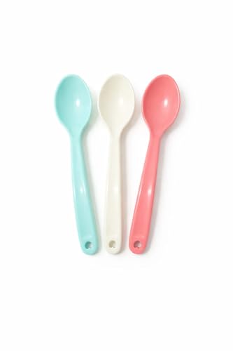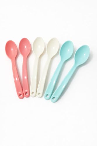 - مجموعة متنوعة: تتكون من 12 ملعقة بلاستيكية بألوان زاهية تشمل الأزرق والأصفر والوردي