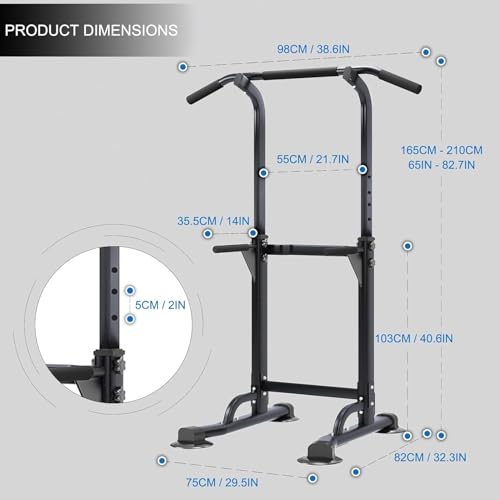 - ★★★★★ 【10-level height adjustment】The height of the pull-up bar can be adjusted from 165 cm to 210 cm. Suitable for all physical needs of adults at home and office. And the lowest level is designed for children and the power tower is suitable for the whole family to exercise.