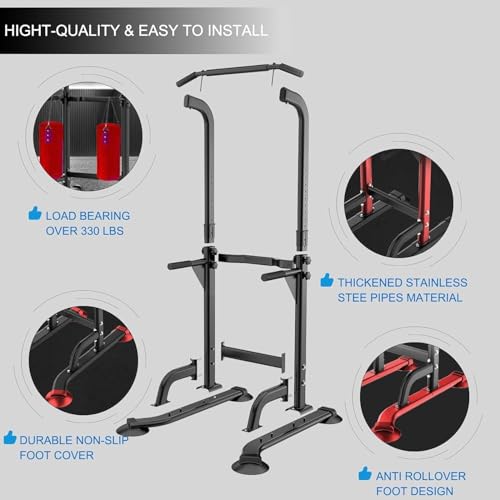 - ★★★★★【Double stability and robust construction】Our power tower has an H-shaped base that is 82 cm long. The power tower is made of high quality steel and supports up to 330 lbs, upgraded and larger suction cups on the bottom with more durability and stability.