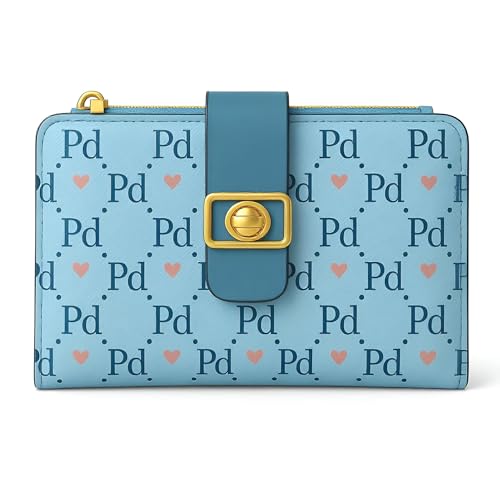 Generic - Compact Wallet - Trendy Monogram and Heart Pattern, Fashioned from Fine Saffiano Leather with a Sleek Gold Clasp and Functional Zipper Closure for Everyday Use (Baby Blue)
