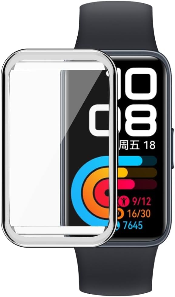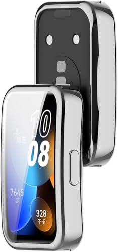 ELMO3EZZ - Compatible with for HUAWEI Band 9 / HUAWEI Band 8 TPU Silicon All-Around Screen Protector Cover Bumper Protector Full Cover Screen Protection (Silver)