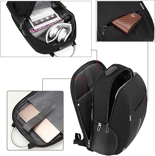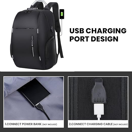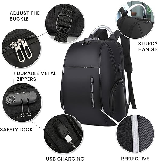 Generic - شنطة كمبيوتر للنساء والرجال، شنطة ظهر بقفل بكلمة مرور ونمط مضاد للسرقة مع شحن USB، شنطة سفر لرجال الأعمال، شنطة لاب توب كاجوال للمراهقين والطلاب