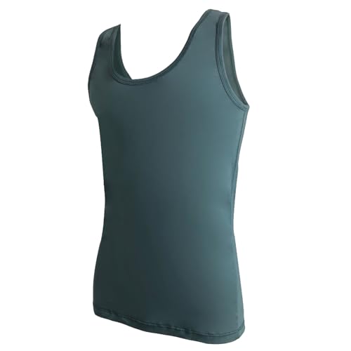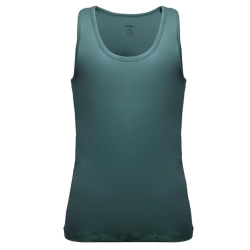 Cool - Cool Plain Sleeveless Scoop Neck Cotton Undershirt for Men , Dark Green , S