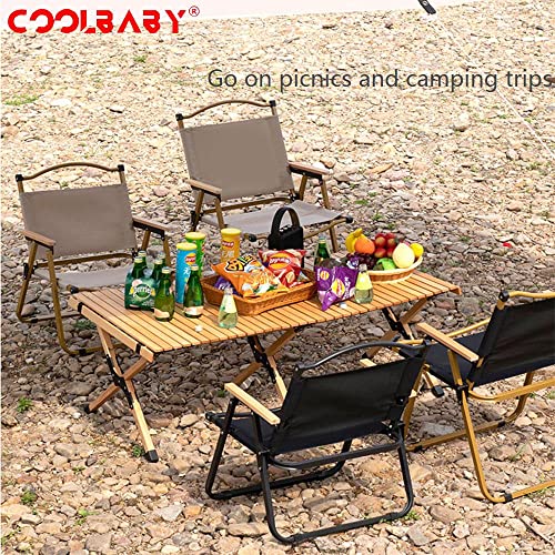 COOLBABY - كرسي من كول بيبي للتخييم والشاطئ والصيد، قابل للطي ومتنقل مع مسند ذراع من خشب الزان، مصنوع من الألومنيوم والقماش والخشب، باللون الأسود