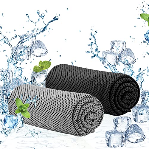 WOODFIB - Cooling Towel, 2 Pack (100x30cm) Ice Towel for Neck & Face During Sports, Microfibre Quick Dry Towel Soft Breathable Chilly Towel for Running, Yoga, Golf, Gym, Camping, Hot Weather (Grey/Black)