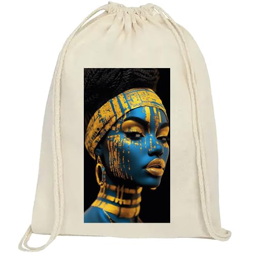 Generic - Cotton Canvas Drawstring Totebag with African Art Print, Beige