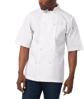 Generic - جاكيت شيف للجنسين، مصنوع من القطن، باللون الأبيض، بتصميم احترافي