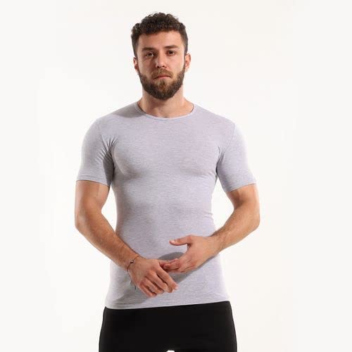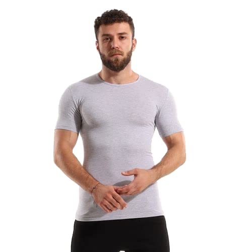 Cottonil - فانلة من قطونيل القطن المرن بتصميم رقبة دائرية مرقشة لون رمادي مقاس 2 للاولاد S
