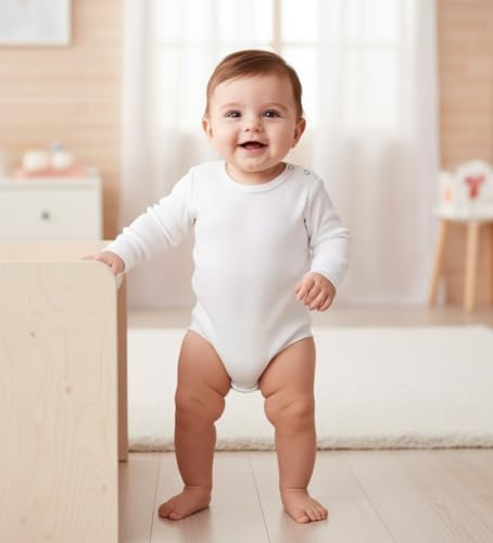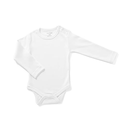 Cottonil - Cottonil White Cotton Baby Bodysuits, Long Sleeve, 6-Pack, Unisex Basic Undershirts for Infants