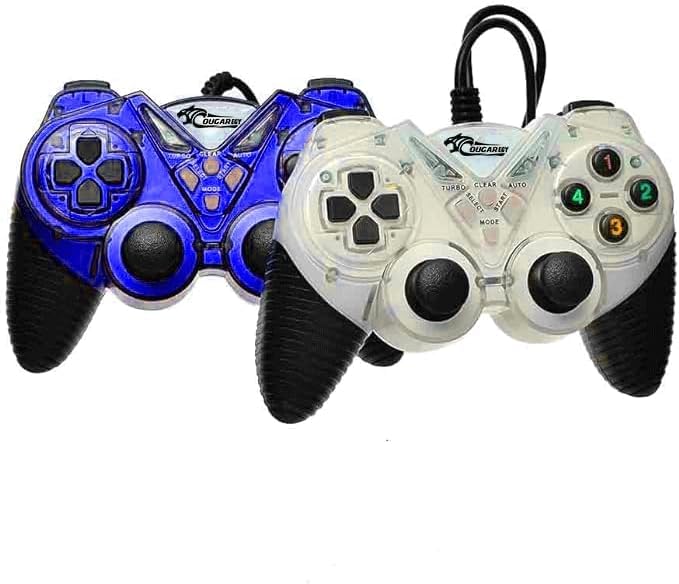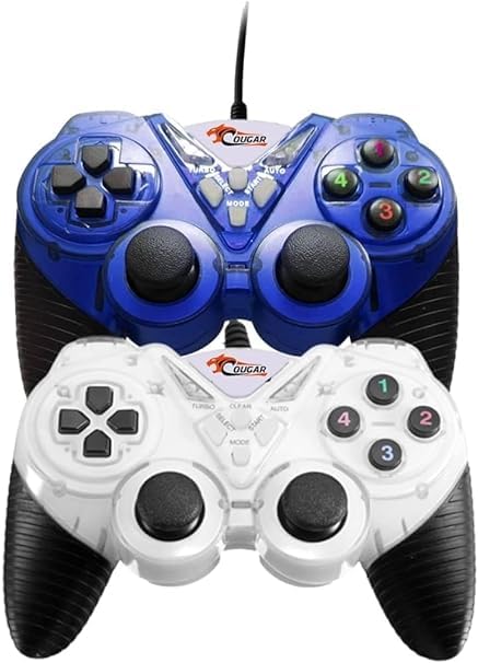 Cougaregy - يد تحكم ألعاب فيديو من كوجر موديل EGY للبي سي، بتوصيل USB سلكي، متوافقة مع PC ولابتوب، مع أزرار قابلة للبرمجة ووظيفة تيربو واهتزاز مريح، باللون الأزرق والأبيض